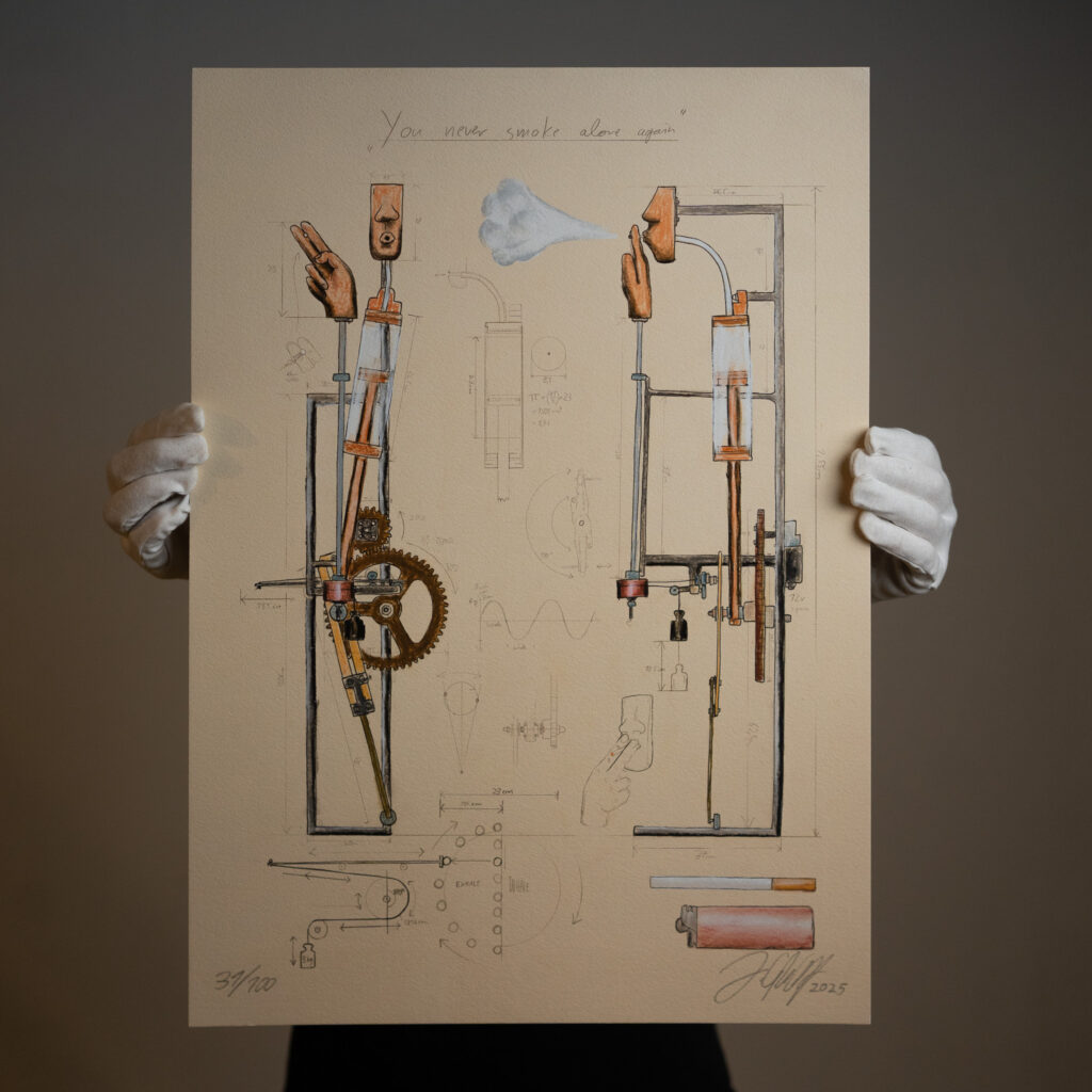 Currently, my artistic focus is mainly on kinetic sculpture, while two-dimensional work has moved into the background. Until 2023, I spent a lot of time working in classical painting and illustration. I’m planning to return to but for now, I keep focus on sculptures. You can find prints of some of my illustrations in the shop.